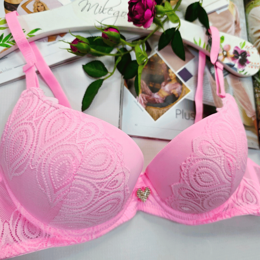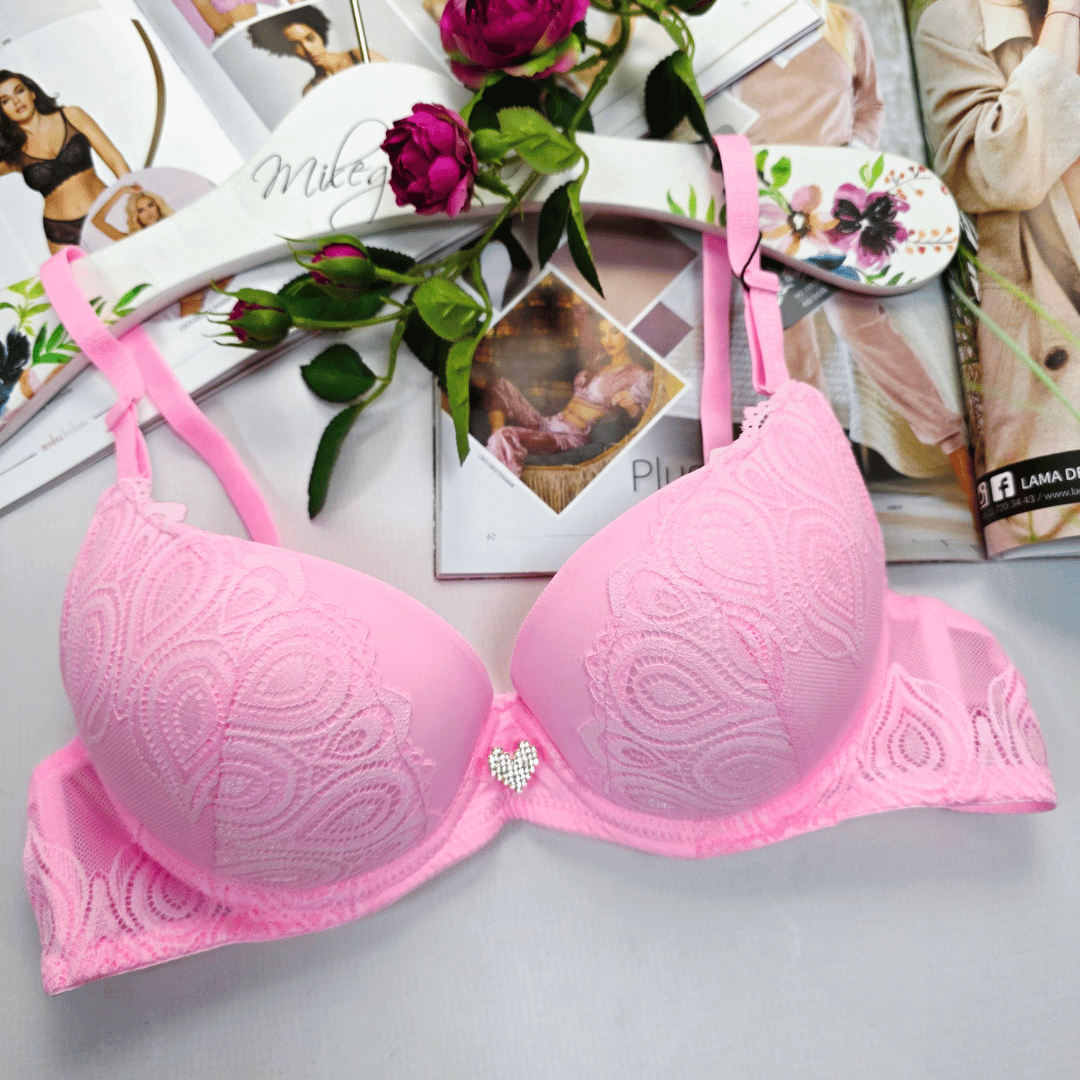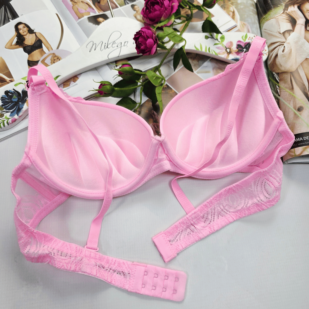Biustonosz koronkowy lekki push-up FLORENCJA neonowy róż