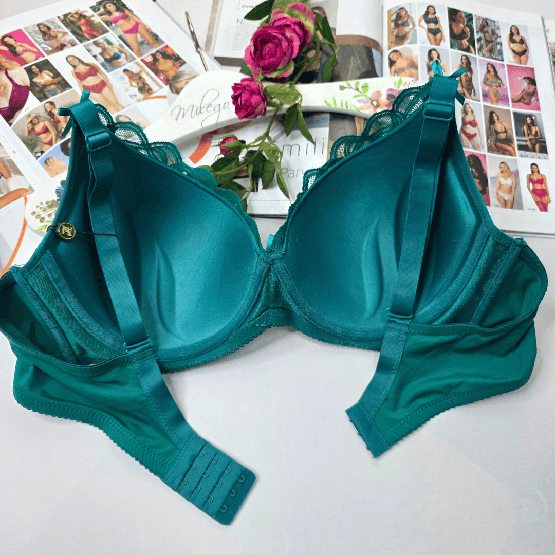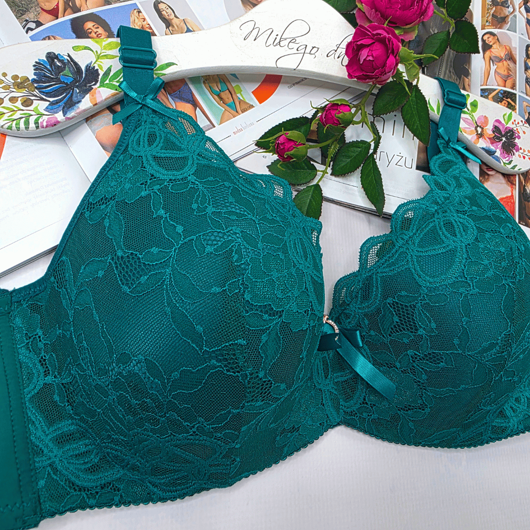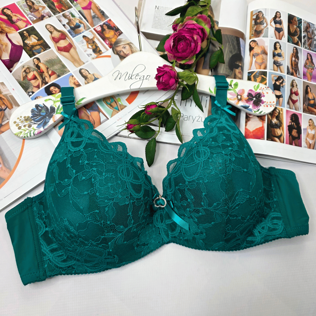 Biustonosz koronkowy mały push-up LIWIA butelkowa zieleń