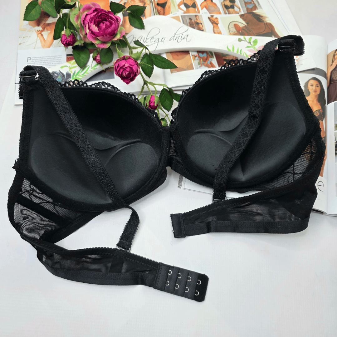- Usztywniane koronkowe miseczki z wypełnieniem push-up dwukierunkowym wyczarują piękny dekolt, pięknie zbierają i podnoszą biust zmysłowo eksponując jego naturalne piękno