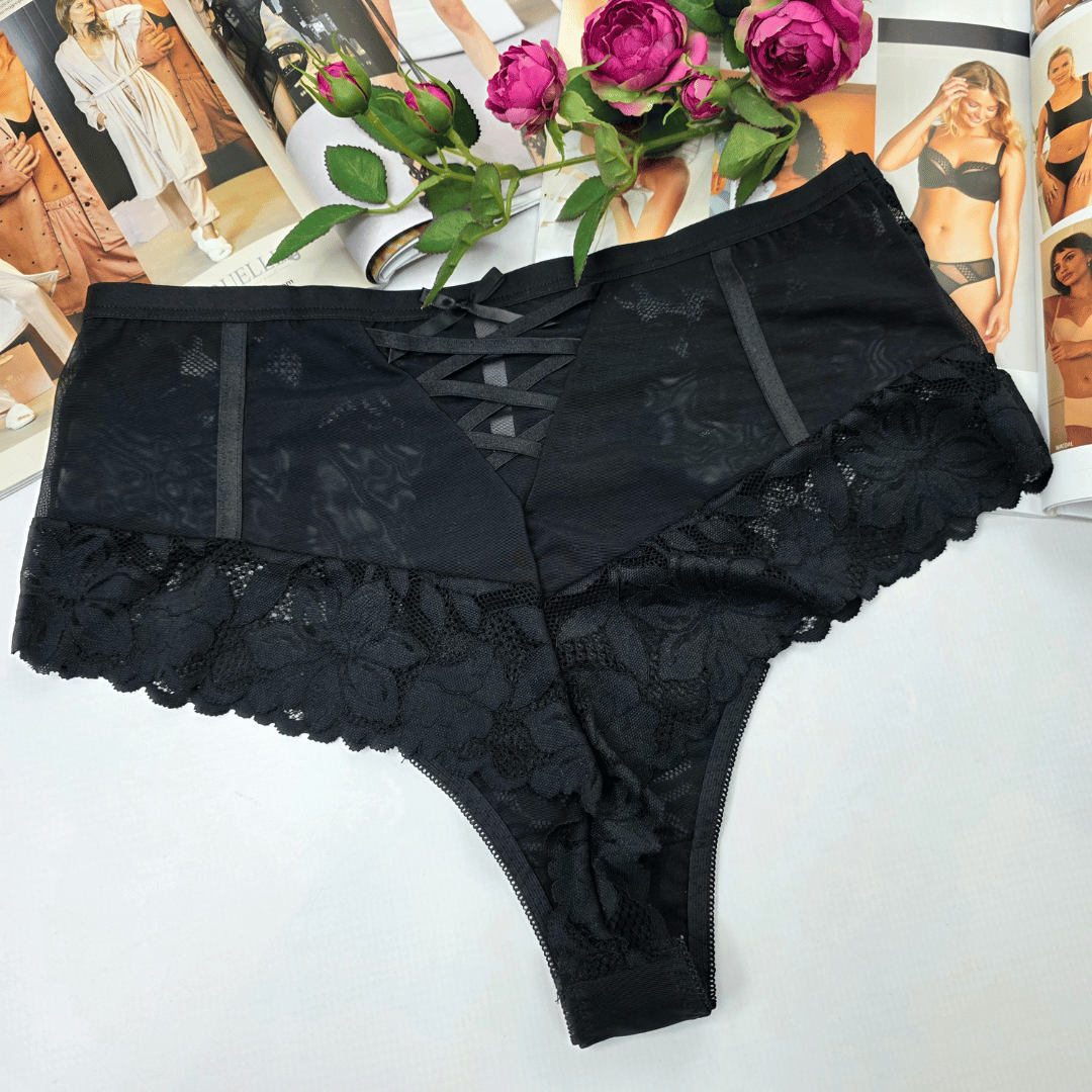Brazyliany koronkowe wysoki stan z imitacją przewiązania plus size KAREN czarny