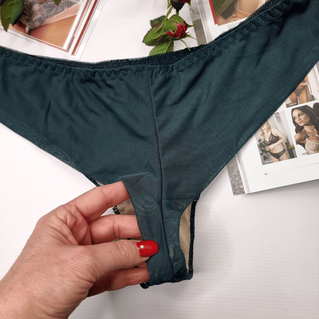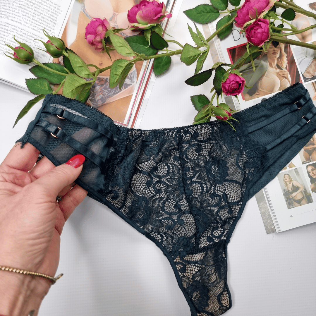 Brazyliany wysoki stan z ozdobnymi paseczkami siateczka Jessica butelkowa zieleń