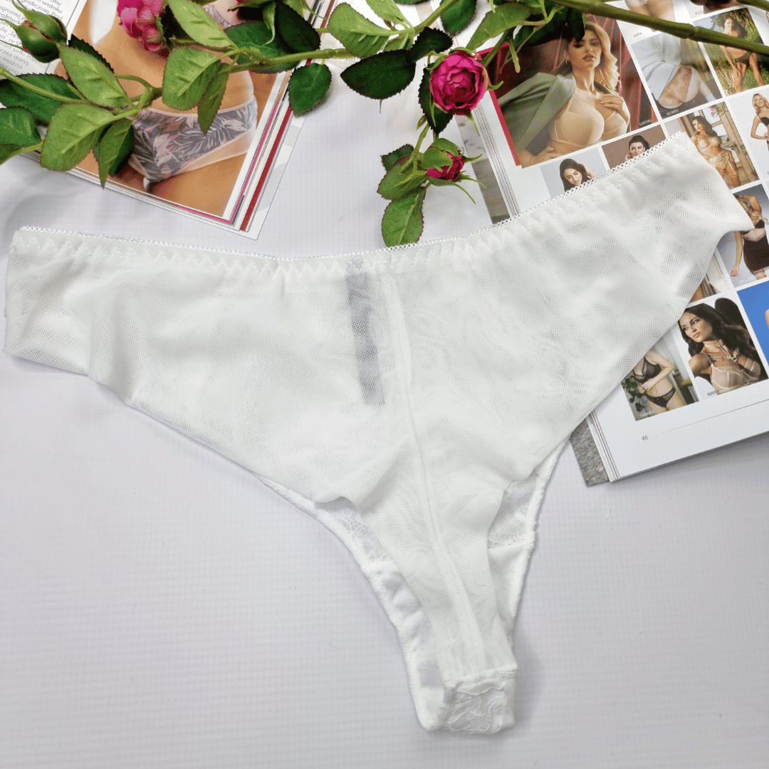Brazyliany wysoki stan z ozdobnymi paseczkami siateczka Jessica ecru