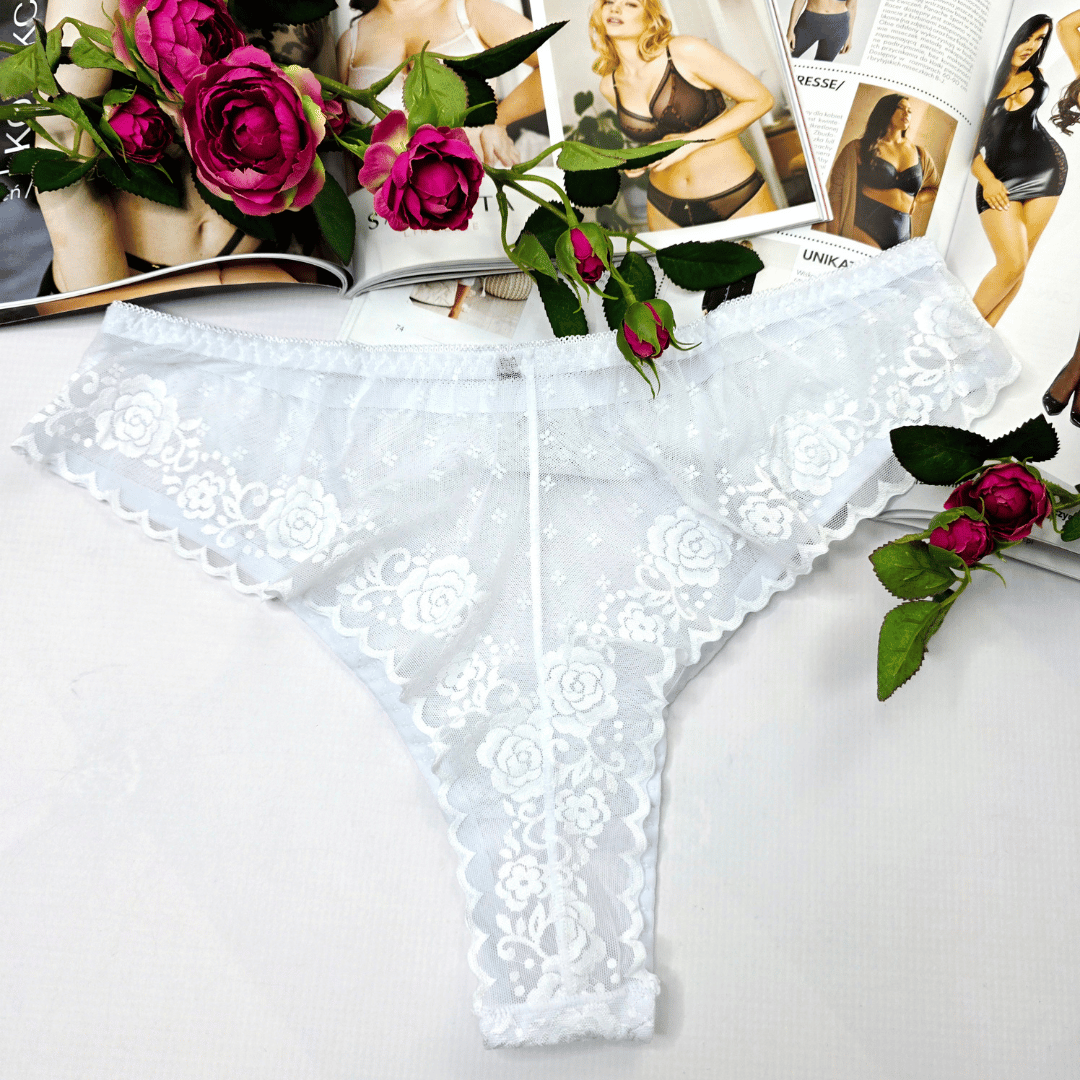 Brazyliany z haftowanej elastycznej siateczki wysoki stan plus size TAYLOR biały