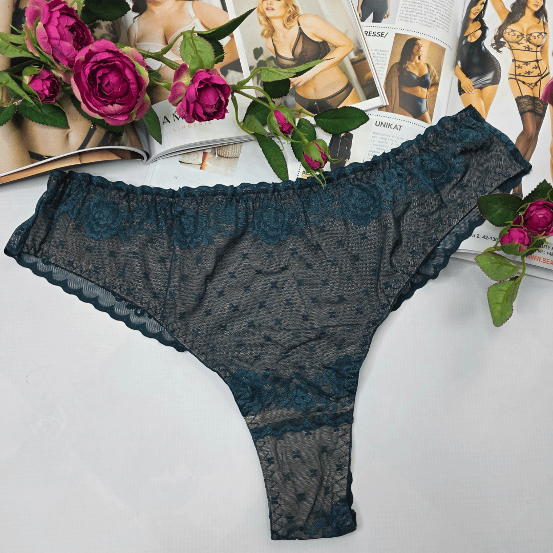 Brazyliany z haftowanej elastycznej siateczki wysoki stan plus size TAYLOR butelkowa zieleń