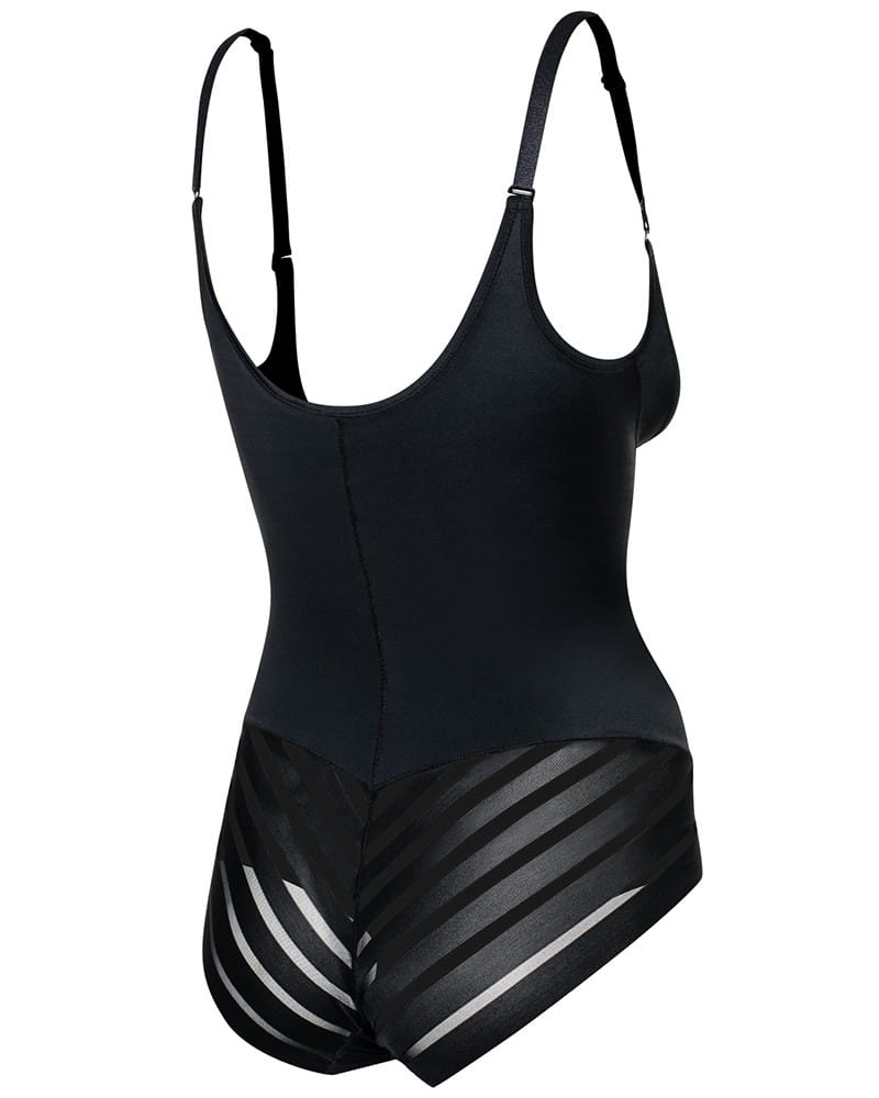 Body pod biust z siatką uszyte z najwyższej jakości materiału, który zapewnia odprowadzenie wilgoci i daje komfortowe samopoczucie. Niewidoczne pod ubraniem dzięki bezszwowej, nowoczesnej technologii wykończenia brzegów INVISIBLE-LINE®. Na pośladkach umieszczono seksowne transparentne wstawki. Tułów gładki, wykonany z połyskującego bardzo dobrze modelującego talię i brzuch materiału. Ramiączka posiadają innowacyjne zapięcie, oraz są odpinane i regulowane, w prezencie para silikonowych ramiączek. Tył na pośladkach wykończony na płasko tak, żeby nic nie odznaczało się pod ubraniem. Model posiada w kroku wkładkę bawełnianą i regulowane zapięcie na haftki.
