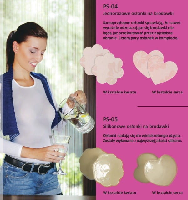 Wykonane z najwyższej jakości silikonu osłonki, doskonale chroniące i maskujące brodawki. Polecane do opalania topless i uprawiania sportów, np. biegania. Osłonki nadają się do wielokrotnego użycia po przemyciu warstwy klejącej. W opakowaniu znajduje się jedna para osłonek. Dostępne w kształcie serca.