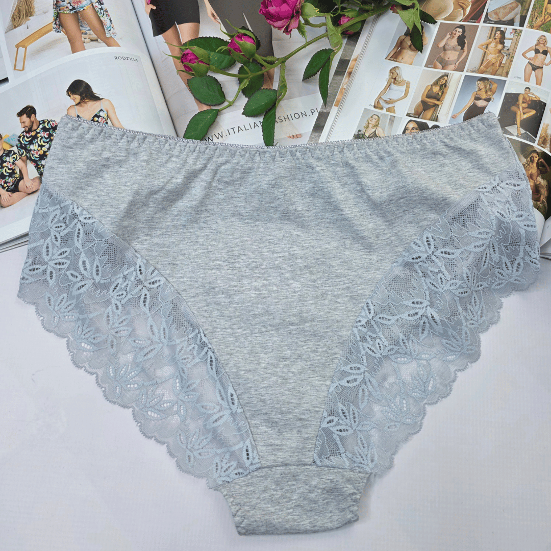 Majtki bawełniane koronkowe wysoki stan plus size NIKOLA szary