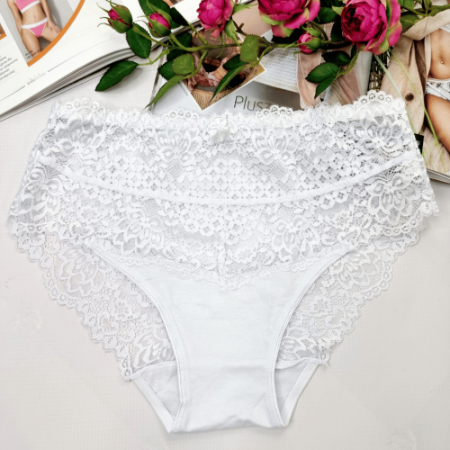 Majtki koronkowe bawełniane wysoki stan AURELIA biały