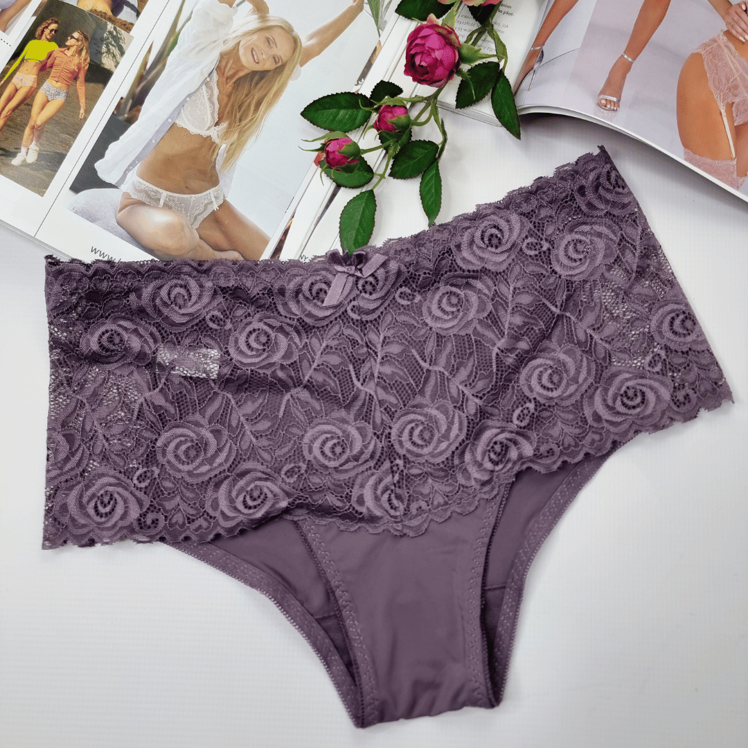 Majtki koronkowe wysoki stan plus size Greta wrzosowy