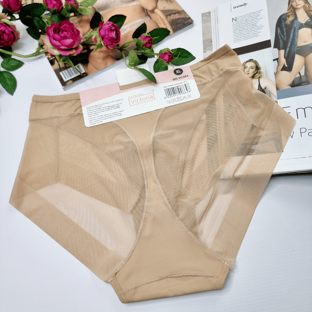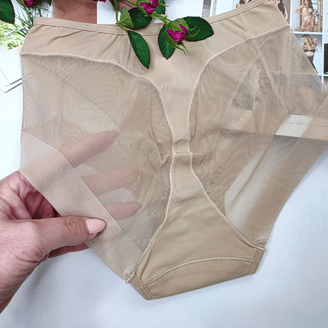 - Zmysłowy krój tyłu z transparentnej siateczki idealnie podkreśla kształt pośladków