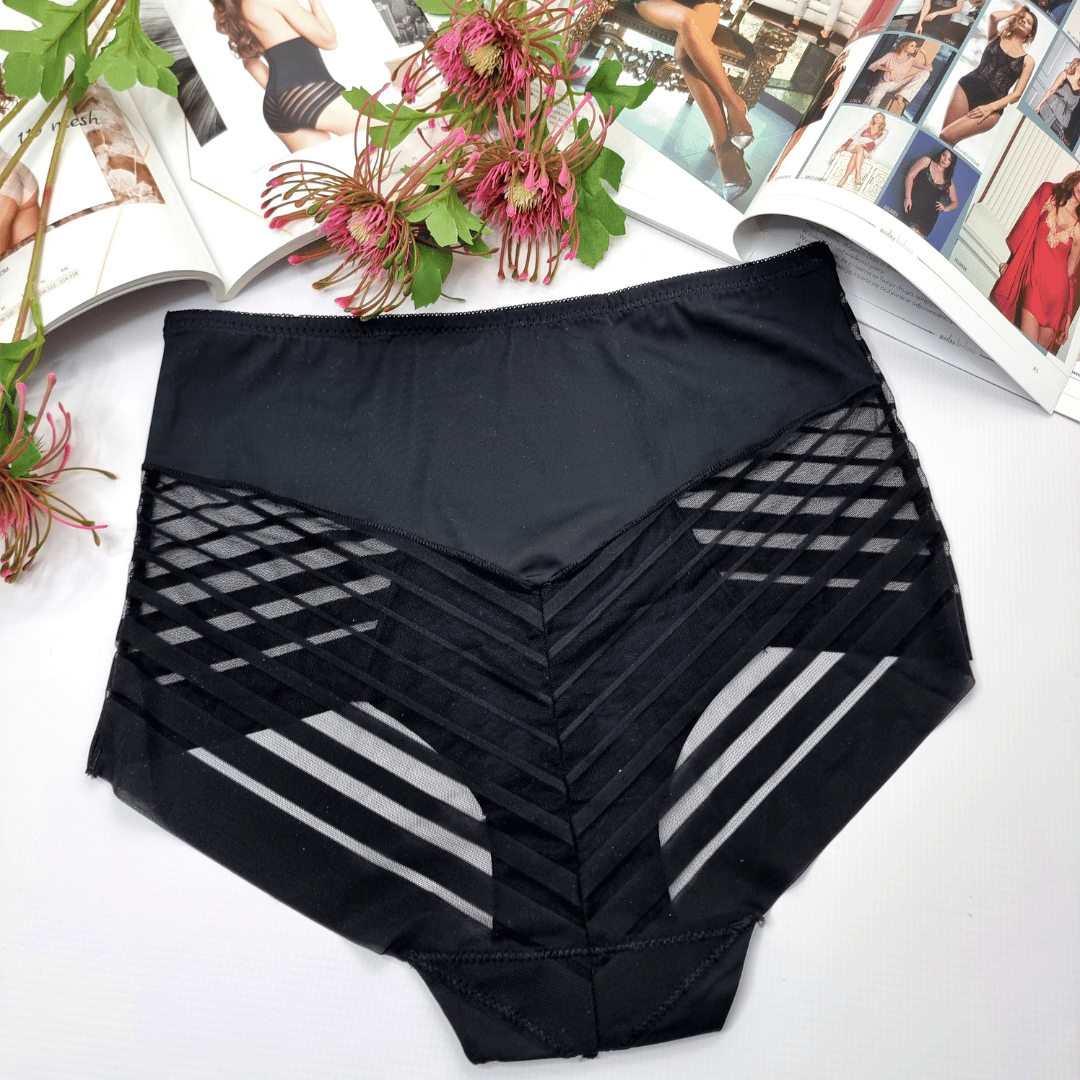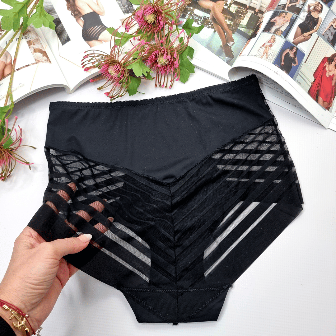 Majtki laserowo cięte z siateczką wysoki stan Odette czarny