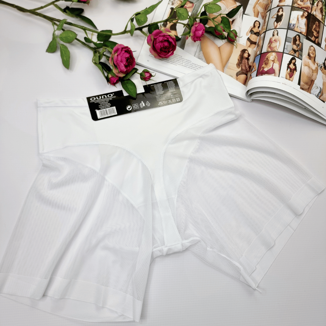 - Efektowne wysokie majtki korygujące zabudowane po bokach z nogawkami z siateczki