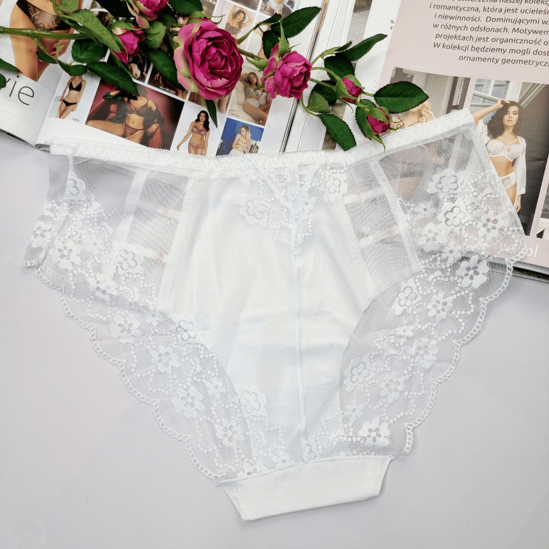 Majtki z haftowanej siateczki laserowo cięte wysoki stan Sabrina biały