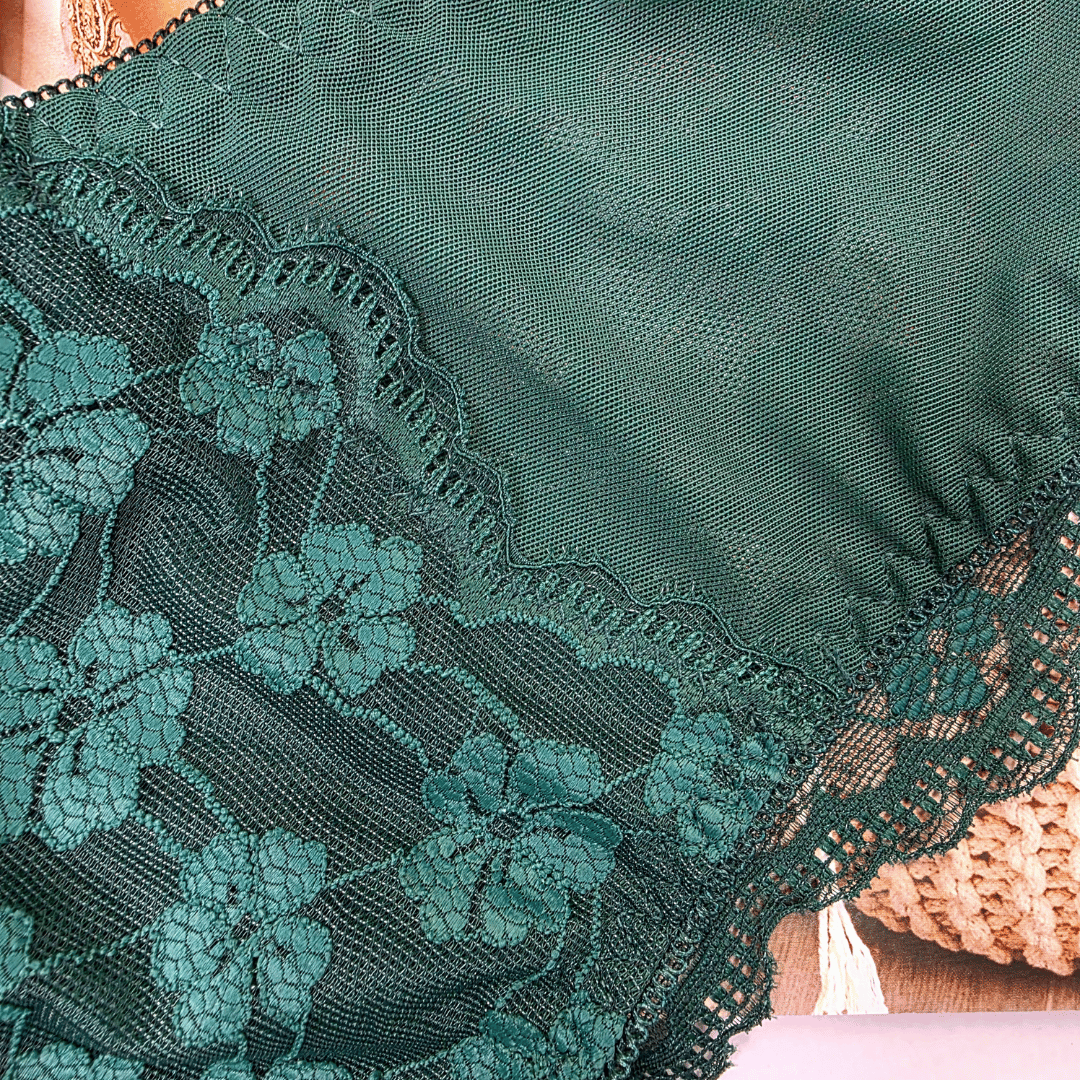 Stringi koronkowe z siateczką wysoki stan plus size ANGELINA butelkowa zieleń
